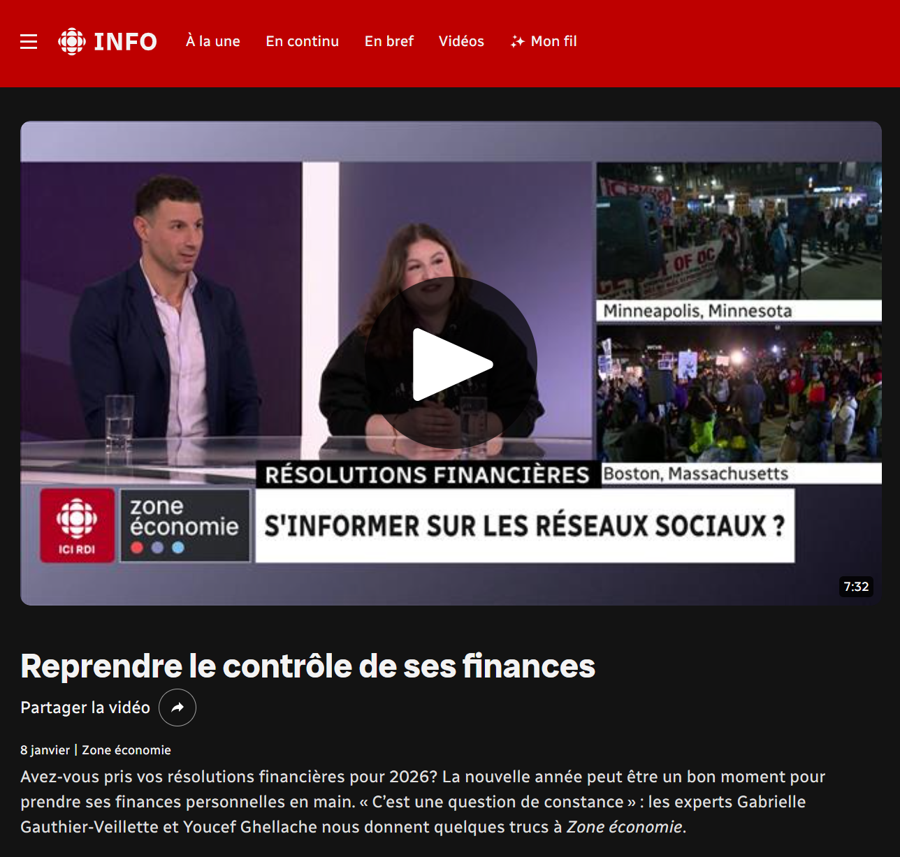 En lien avec le balado de Gérald Fillion Question d’intérêt auquel Gabrielle a participé, elle répond désormais à des questions additionnelles sur les résolutions financières de la nouvelle année en direct à Zone Économie de Radio-Canada.
